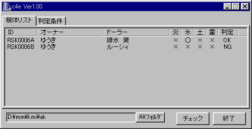 チェッカーのようなクリックすると機体詳細やエラー詳細を表示する方法は分からないのでチェックだけ。